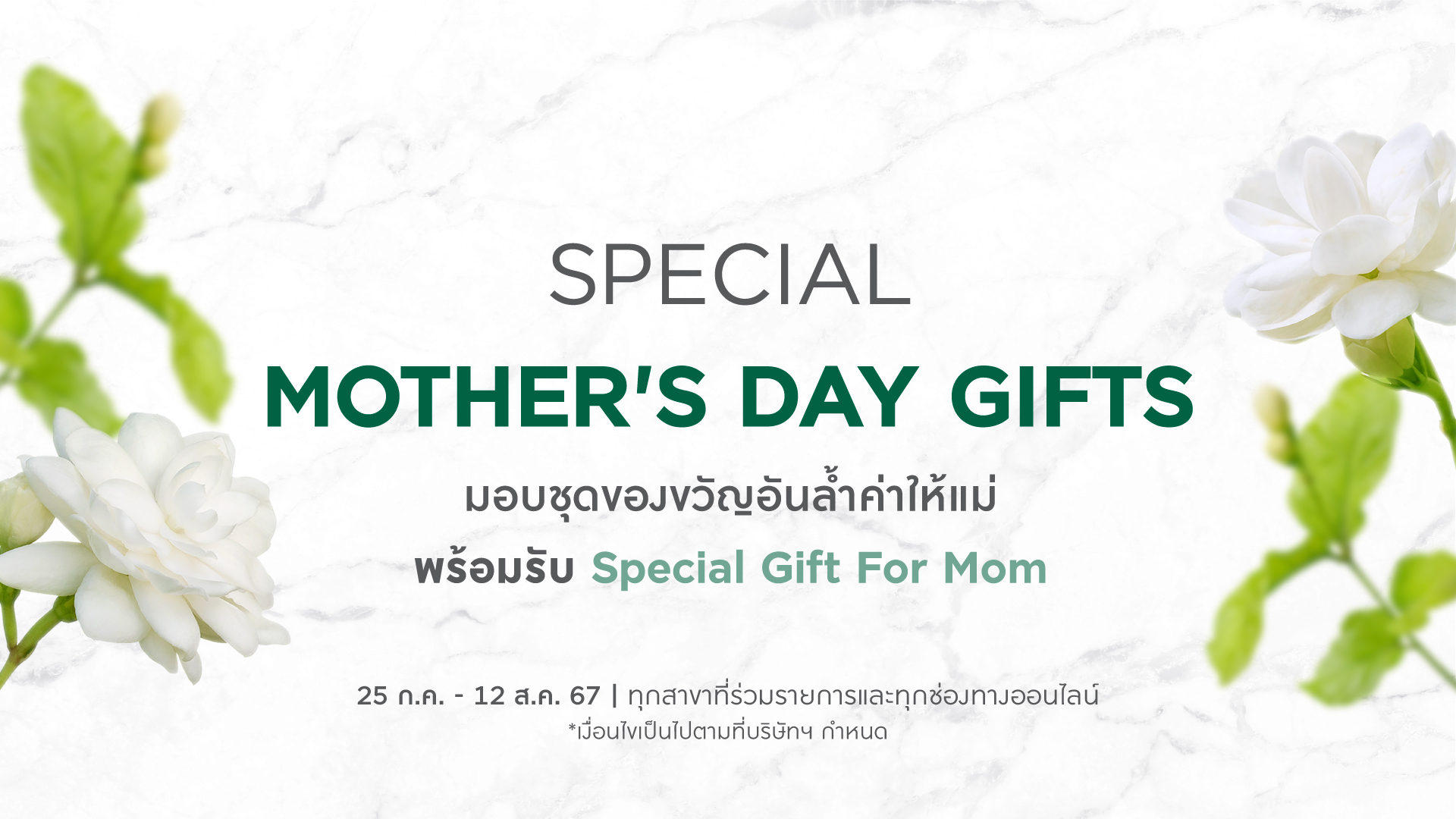พิเศษ! ซื้อชุดเซตของขวัญวันแม่ดูแลผิวพรรณกลิ่นดอกมะลิสื่อความรักอันบริสุทธิ์ที่ยิ่งใหญ่ พร้อมรับความพิเศษเพิ่มเติมผลิตภัณฑ์ Body Mist กลิ่น Thai Jasmine ขนาด 50 ml
