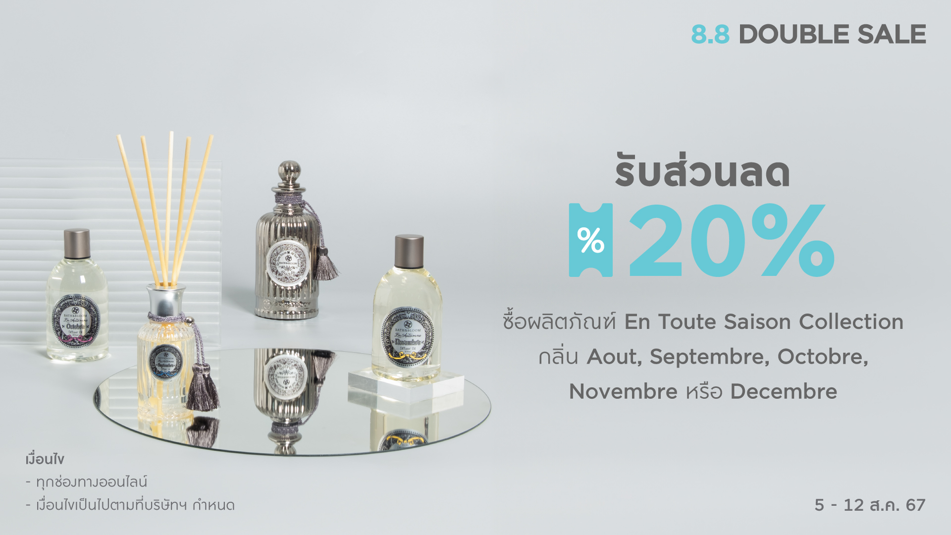 8.8 Double Sale โปรโมชั่นต้อนรับ Double Day!! กับเครื่องหอมเพิ่มบรรยากาศในบ้านกลิ่นหอมละมุนจากมวลหมู่ดอกไม้นานาพรรณ