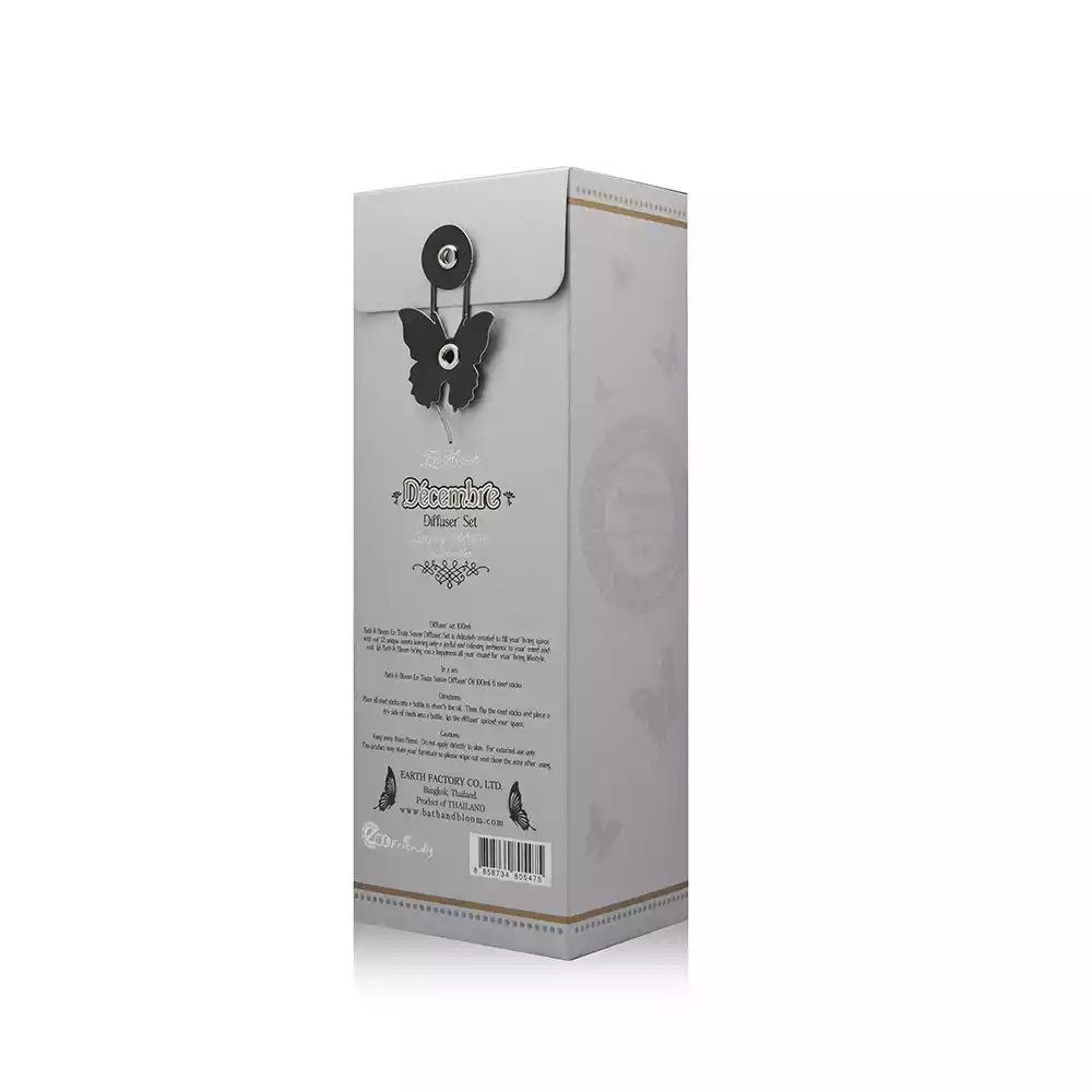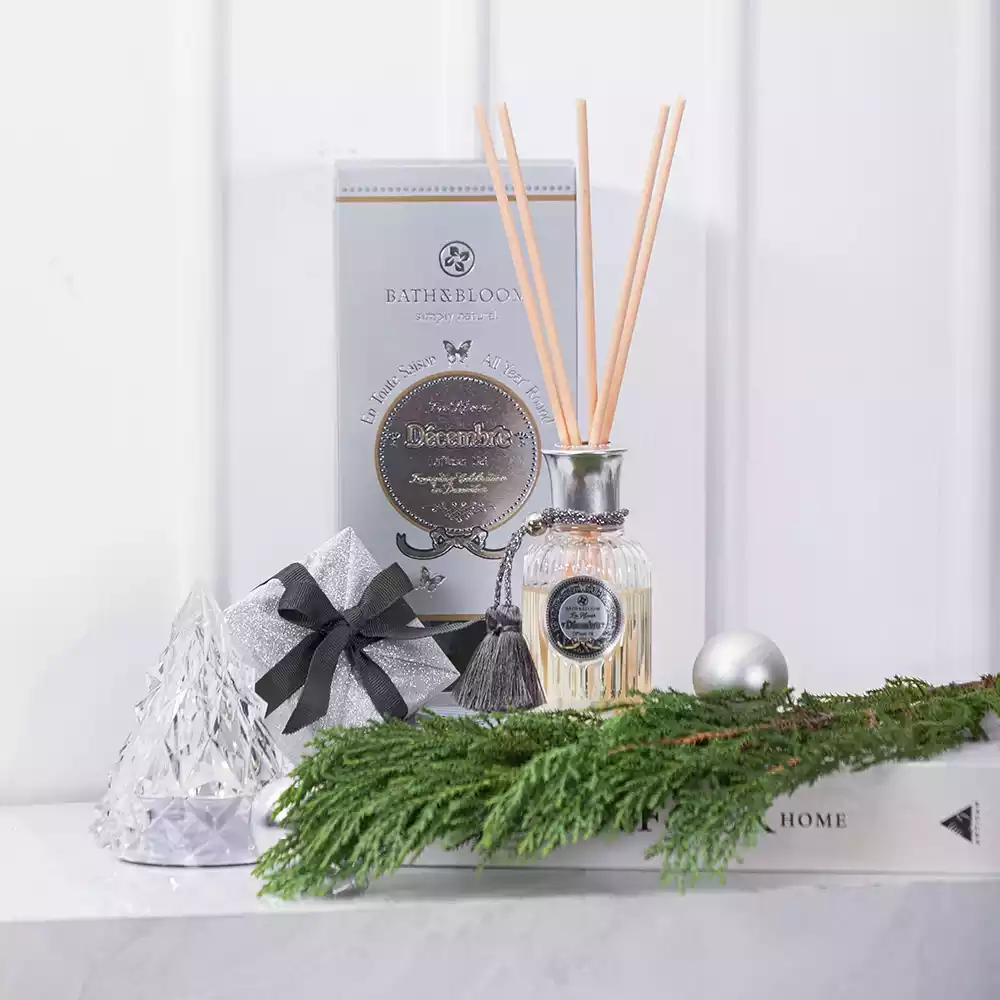 ชุดก้านไม้หอมปรับอากาศ กลิ่น Decembre (December) หรือกลิ่นเดือนธันวาคม ที่มีการผสมผสานจากกลิ่นวนิลลา โกโก้ และกลิ่นน้ำตาลไหม้ รังสรรค์กลิ่นหอมผ่านก้านไม้หอมปรับอากาศ ช่วยสร้างบรรยากาศที่รื่นเริงในช่วงสิ้นปี ให้อบอวลไปด้วยความสุขสนุกสนาน โดยกลิ่นของวนิลลา โกโก้และน้ำตาลไหม้ จะช่วยกระตุ้นอารมณ์ บำบัดความเครียดได้ดี