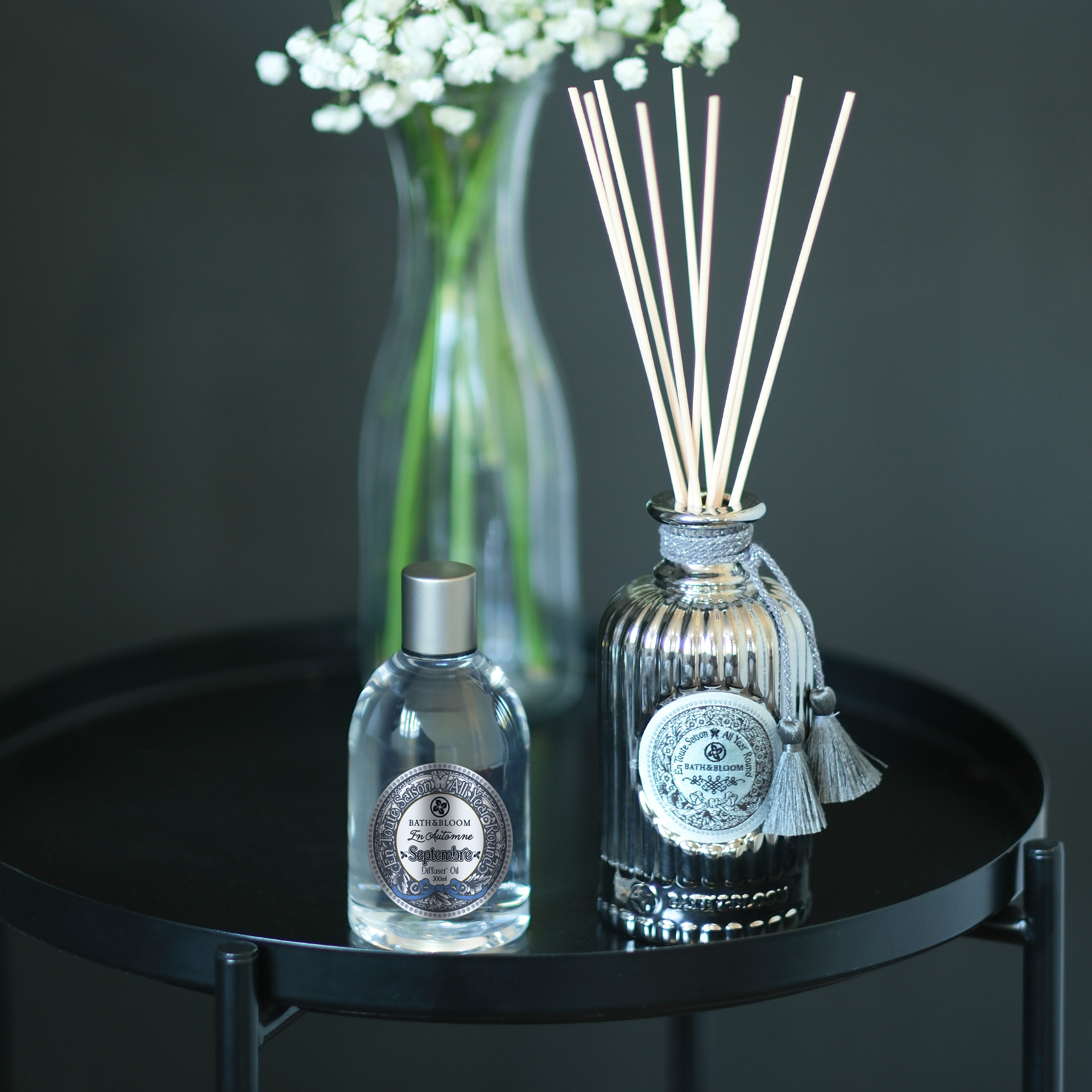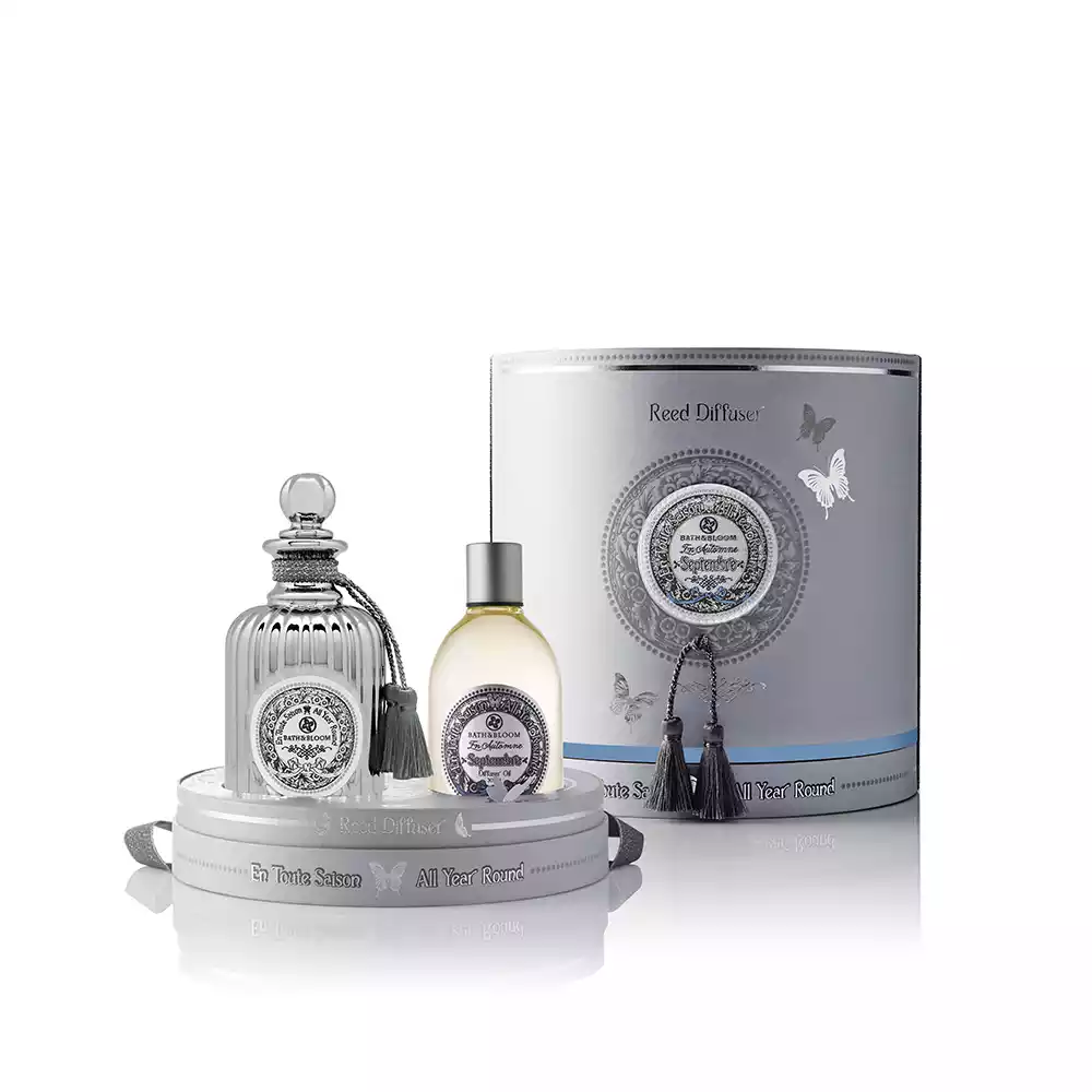 ชุดผลิตภัณฑ์น้ำมันหอมระเหยปรับอากาศ กลิ่น Septembre (September) หรือกลิ่นเดือนกันยายน ซึ่งเป็นกลิ่นที่ผสมผสานจากดอกไอริส ดอกการ์ดิเนีย ดอกแมกโนเลีย ช่วยสร้างบรรยากาศในบ้านด้วยกลิ่นที่หอมหวานจากดอกไม้ ทำให้รู้สึกผ่อนคลายจากความเครียดในแต่ละวัน และกลิ่นหอมอันเป็นเอกลัษณ์นี้ยังบ่งบอกตัวตนและรสนิยมในแบบของคุณ