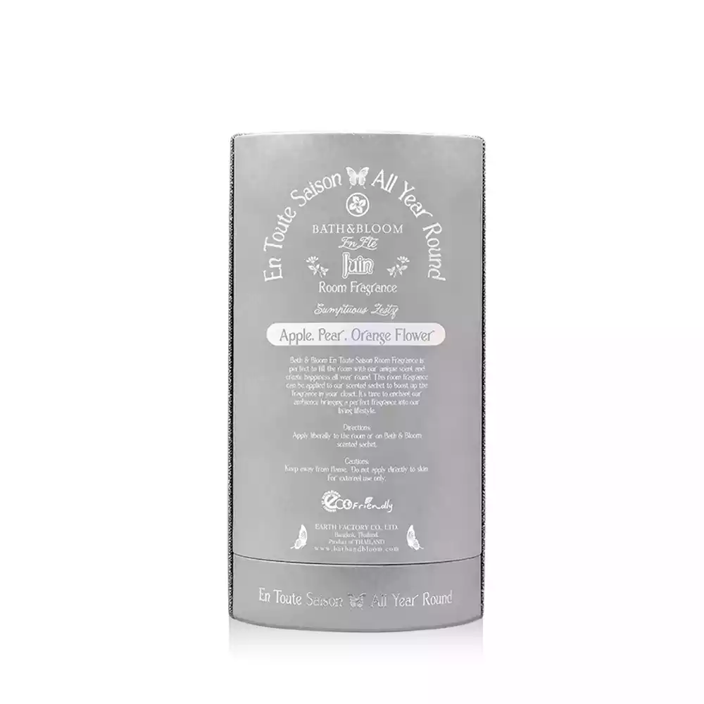 สเปรย์น้ำหอมปรับอากาศ กลิ่น Juin (June) หรือกลิ่นเดือนมิถุนายน กลิ่นหอมหวานอมเปรี้ยวที่มาจากมวลหมู่ดอกไม้และผลไม้หน้าร้อนทั้ง แอปเปิ้ล ลูกแพร์ ลูกพลับ ดอกลิลลี่ และดอกส้ม ช่วยเติมเต็มจิตใจให้มีความสดใสและผ่อนคลายเมื่อได้กลิ่น