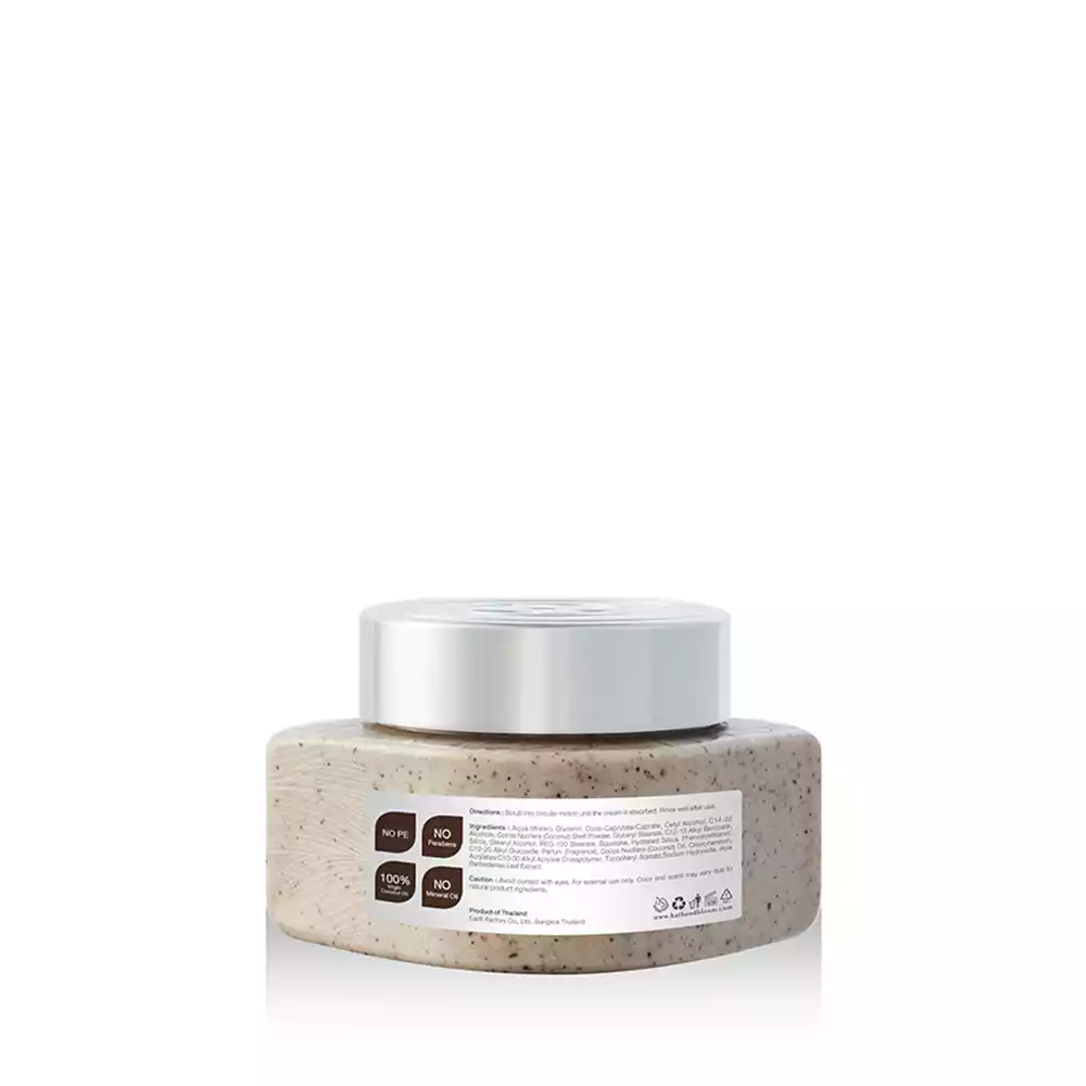 ผลิตภัณฑ์บอดี้สครับขัดผิวกาย กลิ่นมะพร้าว เนื้อครีมสครับสำหรับขัดผิวสูตรเข้มข้นไปด้วยน้ำมันมะพร้าวออแกนิคและกะลามะพร้าวบดละเอียด ซึ่งช่วยขจัดเซลล์ผิวที่ตายแล้วให้หลุดออกอย่างง่ายดาย ทำให้ผิวของคุณดูเรียบเนียน และยังคืนความชุ่มชื้นสู่ผิวในทันที คุณจะรู้สึกถึงความสะอาด แลดูกระจ่างใสและดูอ่อนเยาว์อย่างเห็นได้ชัด เป็นสครับขัดผิวที่ควรใช้เป็นประจำ สามารถขัดผิวได้ด้วยตัวเองหรือสามารถใช้ในร้านสปา เพียงชำระร่างกายด้วยน้ำอุ่นเพื่อเป็นการเปิดรูขุมขน แล้วตามด้วยการสครับขัดผิว โดยทาเนื้อสครับขัดผิวลงบนผิวที่เปียกน้ำ และทำการนวดเบาๆ เพื่อให้สครับช่วยขจัดเซลล์ผิวเก่าออก จากนั้นค่อยล้างออกด้วยน้ำอุณหภูมิปกติ และเช็ดผิวหนังให้แห้ง เพื่อการใช้ที่มีประสิทธิภาพ ควรใช้อย่างน้อยอาทิตย์ละ 1-2 ครั้ง