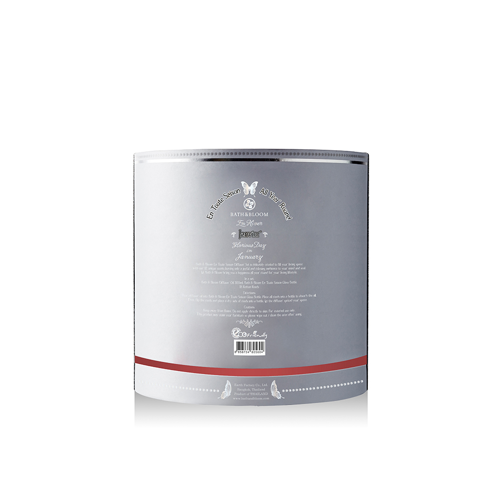 ชุดผลิตภัณฑ์น้ำมันหอมระเหยปรับอากาศ กลิ่น Janvier (January) หรือกลิ่นเดือนมกราคม ซึ่งเป็นกลิ่นที่ผสมผสานระหว่างกลิ่นของเมล็ดอัลมอนด์ วนิลา ลูกแพร์ และมะนาว ทำให้คุณรู้สึกเหมือนได้กลิ่นหอมจากขนมปังที่เพิ่งออกมาจากเตาอบใหม่ๆ มาพร้อมกับความหอมหวานเบาๆ ให้คุณรู้สึกถึงความสนุกสนานและอารมณ์ดี เสมือนอยู่ทามกลางโต๊ะที่รอบล้อมไปด้วยเพื่อนฝูงและคนที่คุณรัก พร้อมที่จะก้าวเข้าสู่ช่วงเทศกาลแห่งความสุขไปพร้อมกัน