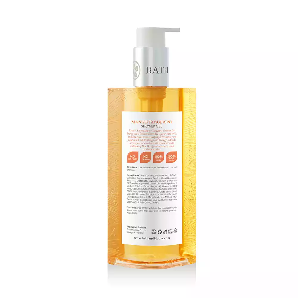 บาธ แอนด์ บลูม ผลิตภัณฑ์ สบู่เหลว เจลอาบน้ำ กลิ่นมะม่วง ส้ม (Mango Tangerine) อุดมไปด้วยวิตามินซีและสารต้านอนุมูลอิสระสูง บำรุงผิวให้ดูอ่อนเยาว์ ปรับสีผิวให้ดูสม่ำเสมออย่างเป็นธรรมชาติ