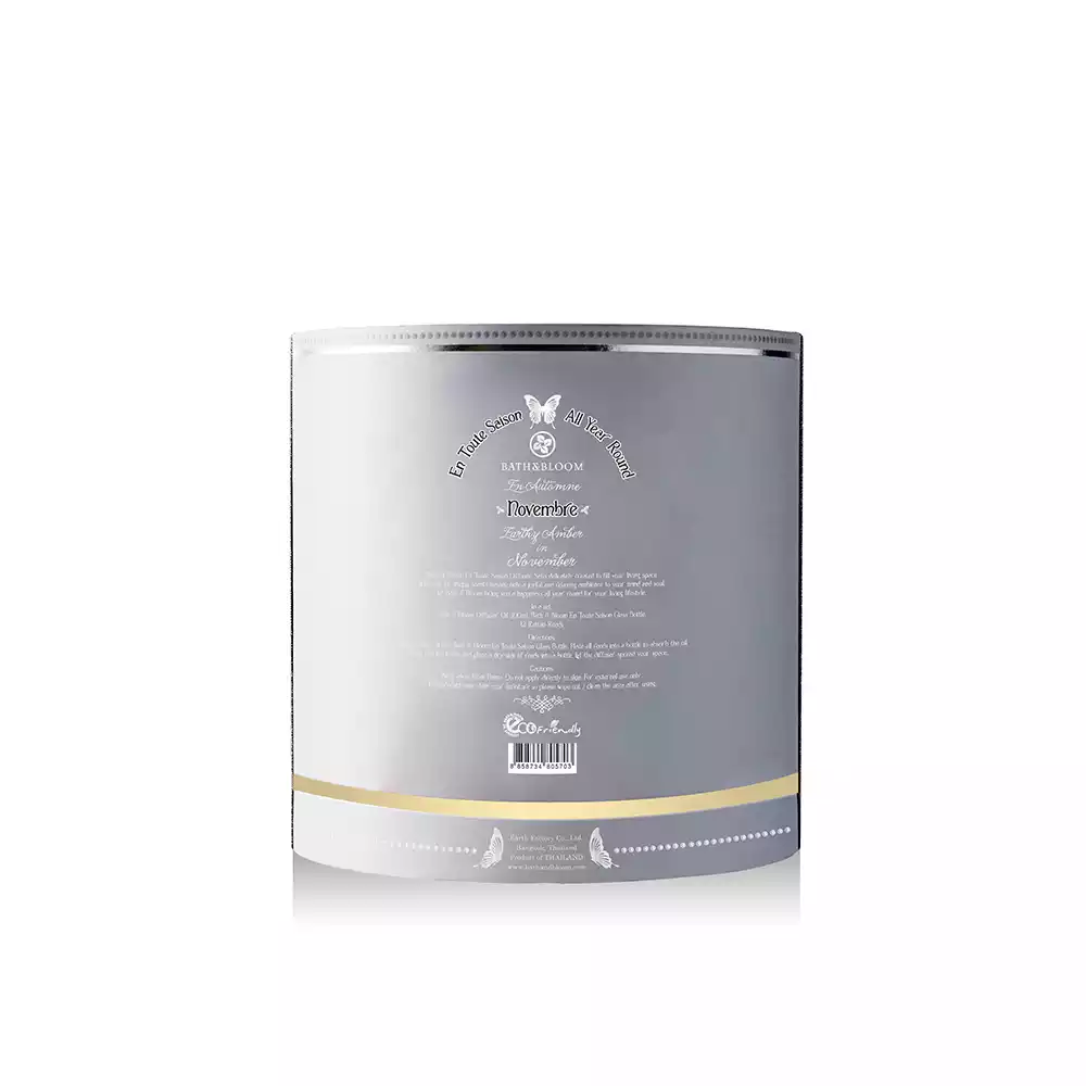 ชุดน้ำมันหอมระเหยปรับอากาศกลิ่น Novembre (November) หรือกลิ่นเดือนพฤศจิกายน กลิ่นหอมจากดอกโอริส ลิลลี่ ไม้จันทร์หอมและส้มแมนดาริน ช่วยเพิ่มความสดชื่น ให้แต่ละวันของคุณรู้สึกผ่อนคลาย กระปรี่กระเปร่า