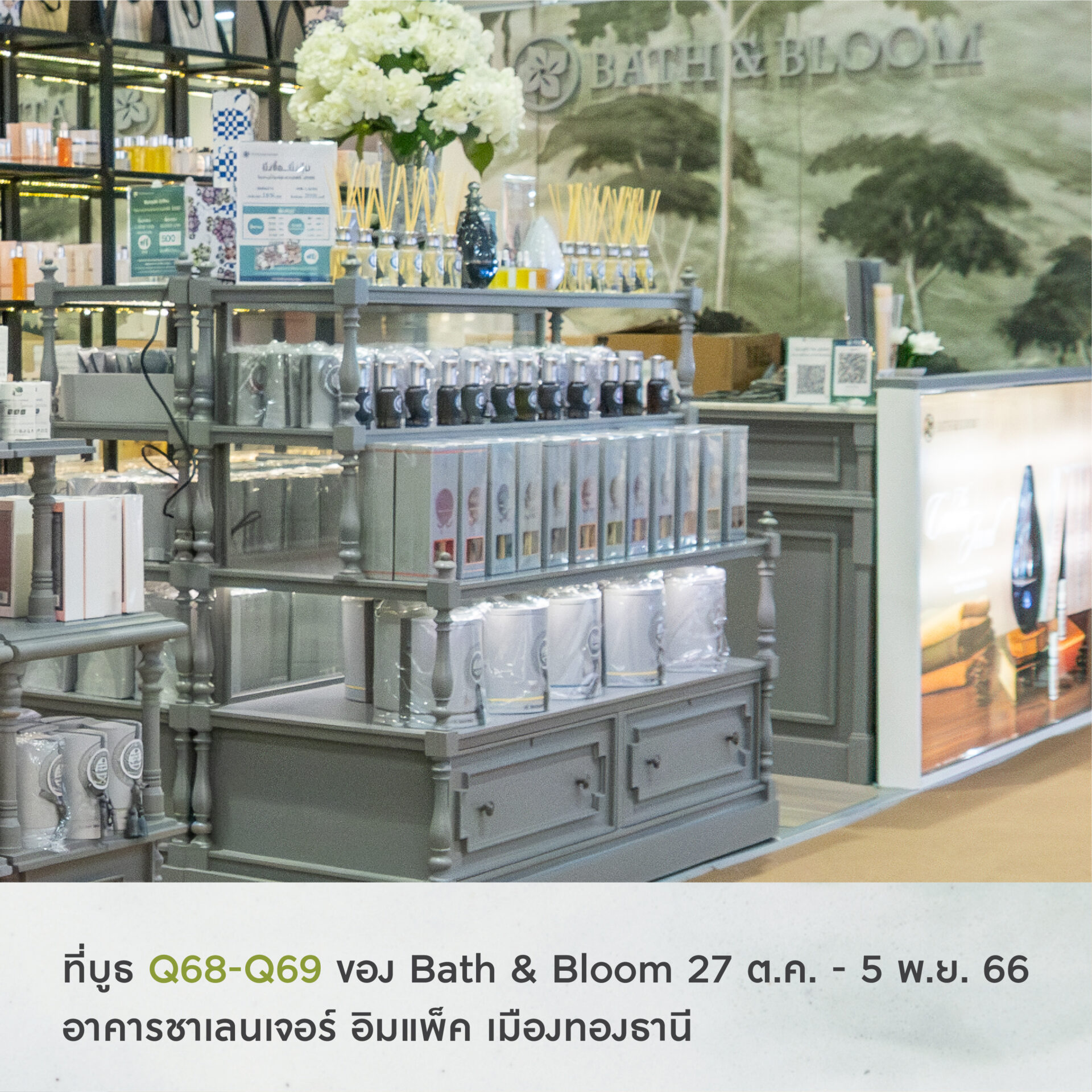 Bath & Bloom สินค้าเครื่องหอมและสกินแคร์แบรนด์ไทยพร้อมสารสกัดจากธรรมชาติโดยภายในบูธพบกับสินค้าในกลุ่มผลิตภัณฑ์ Home & Living, Hygienic Collection, Bath & Shower, Body Treatment และ Hair Treatment ที่มาพร้อมกับโปรโมชั่นส่วนลดพิเศษ และร่วมกิจกรรมเพื่อรับฟรีของขวัญจากบูธ Bath & Bloom นอกจากนี้ยังมี Voucher ส่วนลดพิเศษให้ท่านนำไปช้อปสินค้าผ่าน Online Store อีกด้วย
